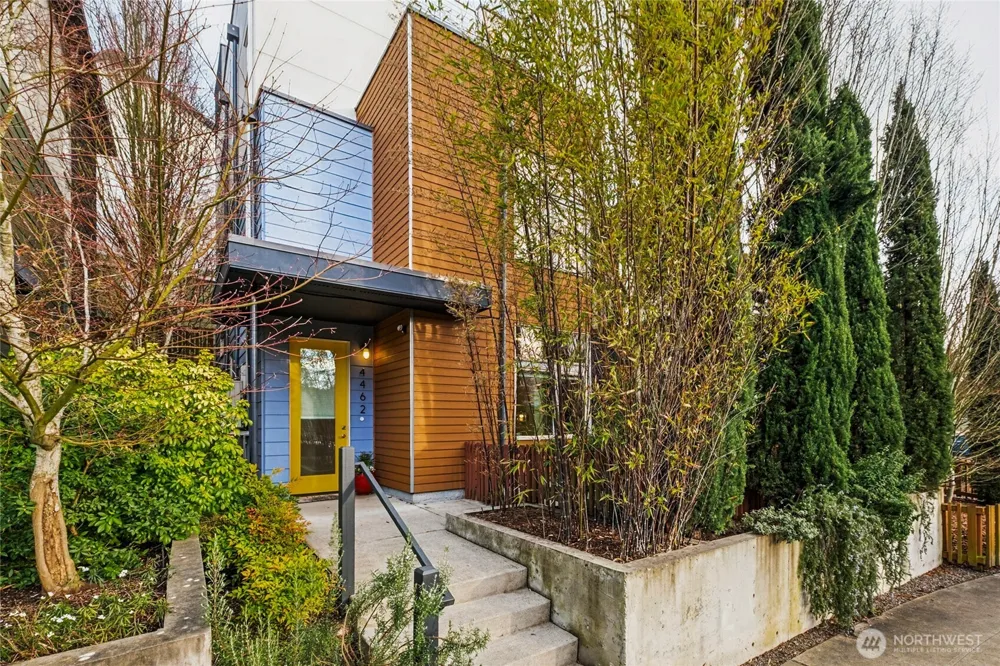 Freestanding and 5-Star Built Green by revered sustainability innovator Dwell Development, this Rainier Vista gem offers true independence. No shared walls, dedicated parking, and a usable yard set it apart. Just steps from Columbia City light rail, parks, restaurants, cafes, shopping, breweries, and Farmer's Market, the location delivers genuine urban convenience. The thoughtful three level layout provides flexibility for real life: main level living anchored by concrete floors with radiant heat, an updated kitchen with oversized island and direct patio access, two mid level bedrooms joined by a Jack-and-Jill bath, and a spacious top-floor primary retreat with walk-in closet, balcony, and updated bath featuring dual shower heads. A rooftop deck expands entertaining space, while the architect-designed garden oasis with irrigation creates a private outdoor setting that will shine in the months ahead. Access from the quieter rear side with dedicated parking just steps from the door. The fenced yard offers space for gardening, pets, or outdoor dining—breathing room in such a connected setting. Tankless hot water, triple pane windows, and whole-house A/C complete this sustainable, practical home designed to grow with you. Vibrant neighborhood filled with life, connection, and neighborly gatherings; amenities include community garden P-patch, parks, and more.