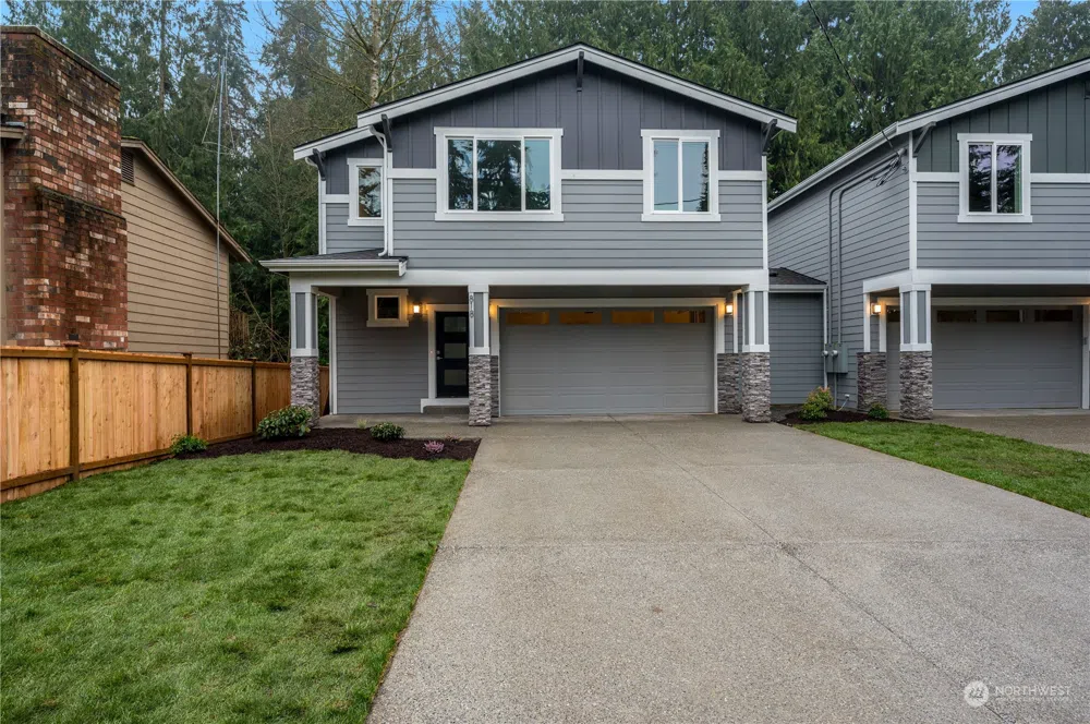 North Facing New construction in a great location close to schools, shopping, and freeway access. Extensive waterproof LVP flooring, quartz counters with full height backsplash in kitchen, quartz bathroom counters, and HUGE YARDS with no maintenance turf and cedar fencing This home is move in ready. The primary bath features a dual quartz vanity with a tile shower and soaking tub plus a walk-in closet. No common elements and only attached by small section of the garage. Don't miss this amazing home in a wonderful South Everett location.